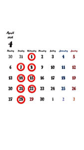 4月の店休日のお知らせ